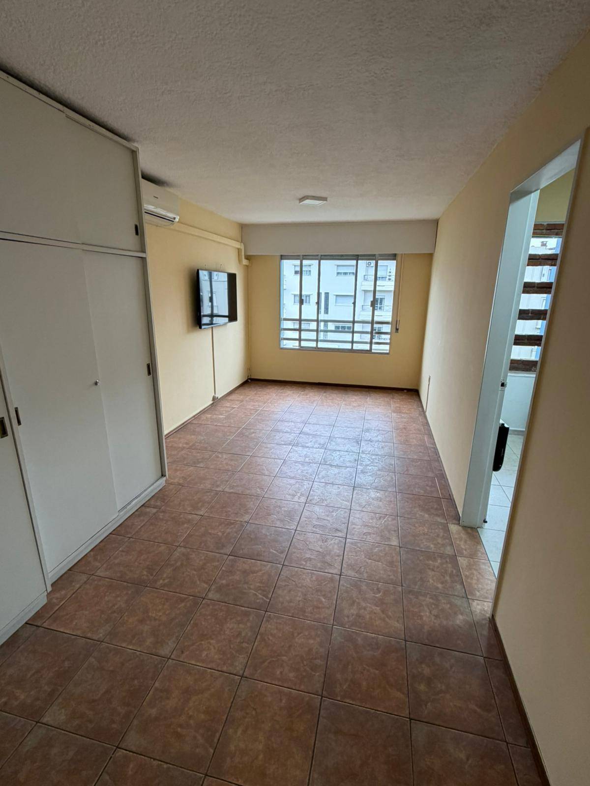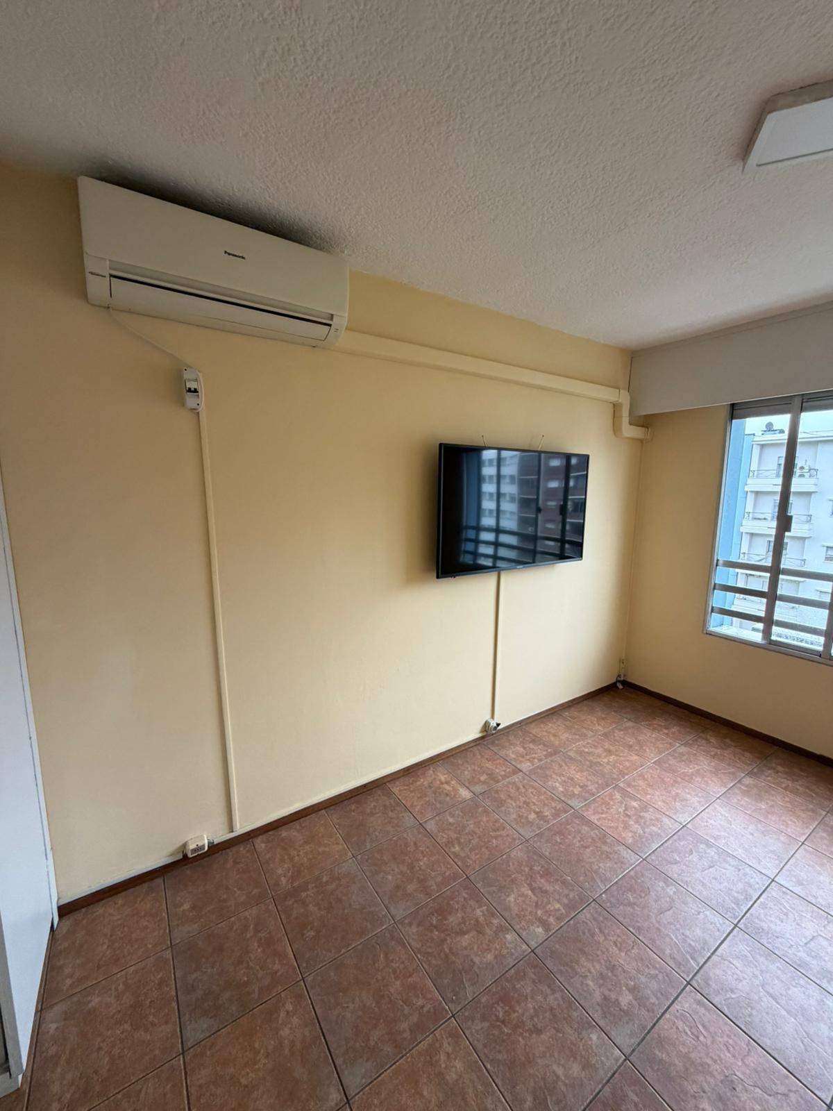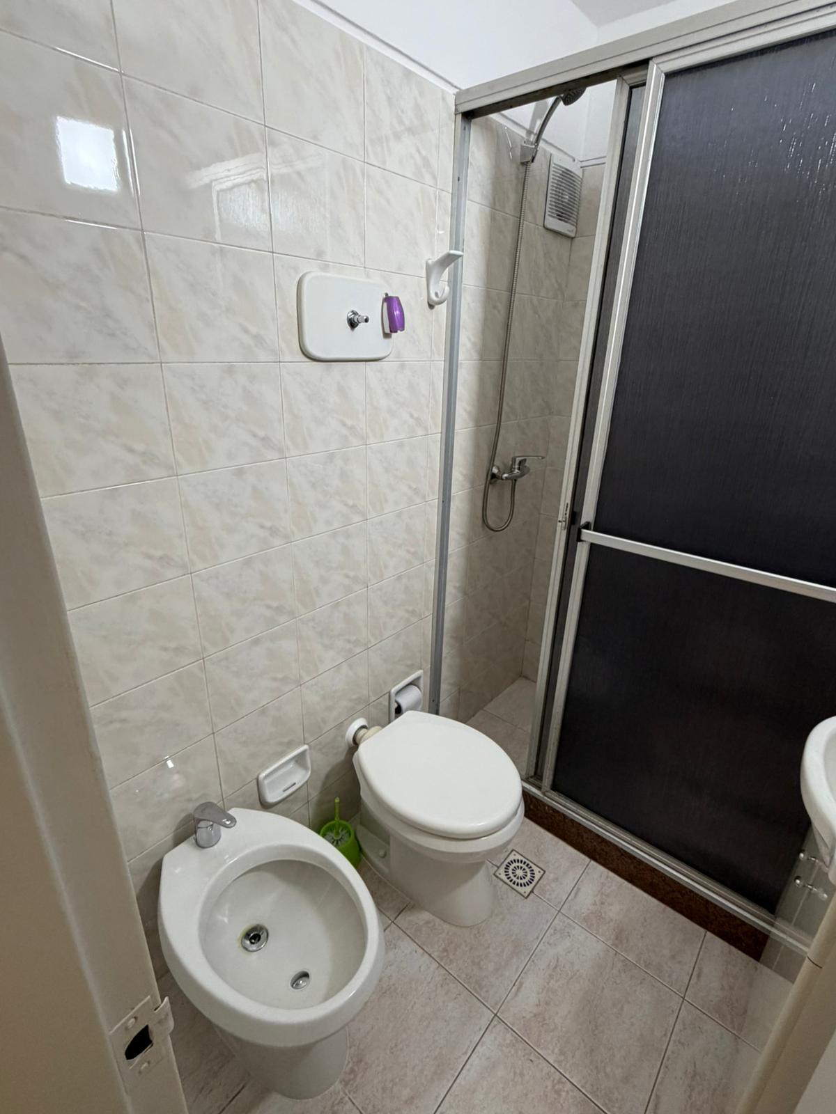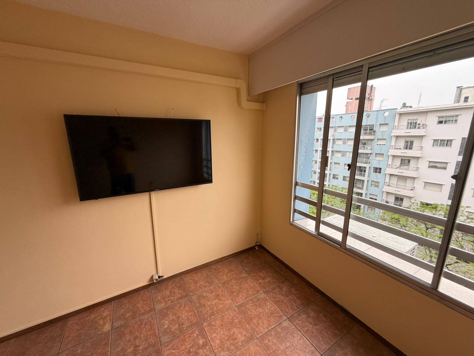 Apto. de 1 Dormitorio con Placares, Tv Smart 42″ y Ventilador de techo; Living Comedor con Aire Acondicionado 12000 BTU, y TV Smart 50″; Cocina Definida con muebles aéreos, bajo mesada y 2 mesas rebatibles; Terraza con espacio y conexión para lavarropa y 3 cuerdas para colgar; Piso 9 muy luminoso; Edificio 10 pisos, 3 Aptos por piso; Salón de usos múltiples para usuarios del edificio con precios muy accesibles. Lindero con la Cooperativa Policial que dispone en el 3er Piso de un Restaurante abierto a todo público El Edificio posee un circuito de cámaras de seguridad en todos los pisos. No acepta mascotas.